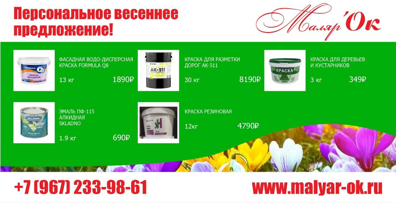 «Маляр-ОК»: – Розничная сеть магазинов малярных и отделочных материалов в Кубинке, Дорохово, Головинке.